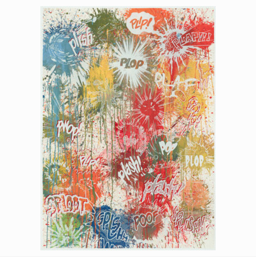 Tuesday, 19 November 2013 19:25This new group of works consists of silk-screen on painted backgrounds, featuring onomatopoeias that evoke the sound of painting actions (SPLORCH! SLLURP! WHOOMPH!). Torn from comic book pages, collaged, blown up and printed on canvas and paper, the onomatopoeias extend Marclayʼs investigation into the relationship between sound and image, sampling elements from art and popular […]