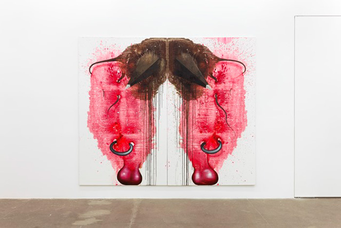 Thursday, 1 August 2013 19:42Bortolami Gallery presents a group of new paintings by Warsaw-based artist Piotr Janas, Minotaurs. The artist refers the nine paintings as “figures” or “self-portraits”. The paintings are composed of geometric forms occupied by organic marks and scratches, while also including detailed body parts and fleshy organs. These grotesque paintings somehow also reflect the visual resonance […]