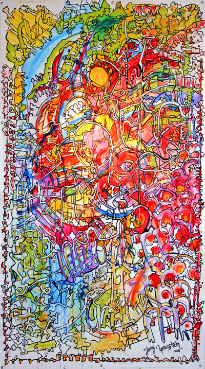 Street Fusion came to life in 2010. A colorful explosion with an urban street feeling, this piece was inspired by old school funk music and street art.