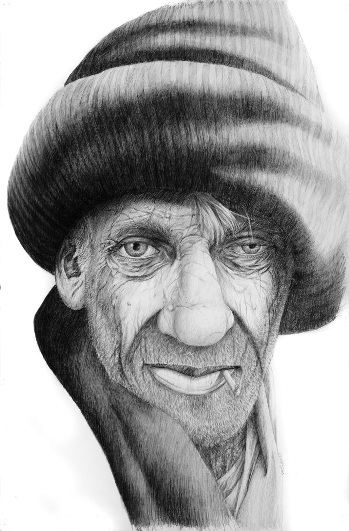 My individual realist style combines painting with drawing, juxtaposing stark black and white graphite images on paper, with opulent acrylics on canvas. My somewhat oversized canvases transport the viewer to rambunctious inner-city settings, where counter-culture characters wearing street inspired dress, and reflecting an abrasive, yet nonchalant attitude, aggressively confront and engage with the audience. Abandoned brick buildings adorned with colorful graffitti messages and imagery, evoke the underground intrigue and dangers of revolutionary artistic critiques of culture. My graffitti imagery is not only meant as mere adornment to enhance the hardcore atmosphere of the inner city compositions, but also as symbolic codes and challenges to the overbearing power structure and the politically correct world in which we live. In my new “Forgotten Faces” series, I want to remind the viewer of those whom our society has forgotten, particularly, the countless homeless veterans. My visual compositions often include messages meant to engage the viewer, and hopefully prompt them to think as well as to enjoy the artistic merit of the composition.