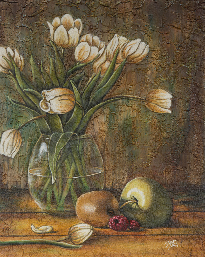 Oscillating between techniques in the past has led me to combine traditional art with more modern techniques, creating the mixed media found today in my artwork. Art being the freedom of expression of the soul, I hope to express my profound and intense nature by the contrasts and intensity of my colors. I wish to let transpire femininity and softness through the emotions created by my subjects. Hopefully, the beauty and harmony evoked will permit the viewers to connect to their inner selves, creating this magical moment of being touched by a painting. Enjoy!
